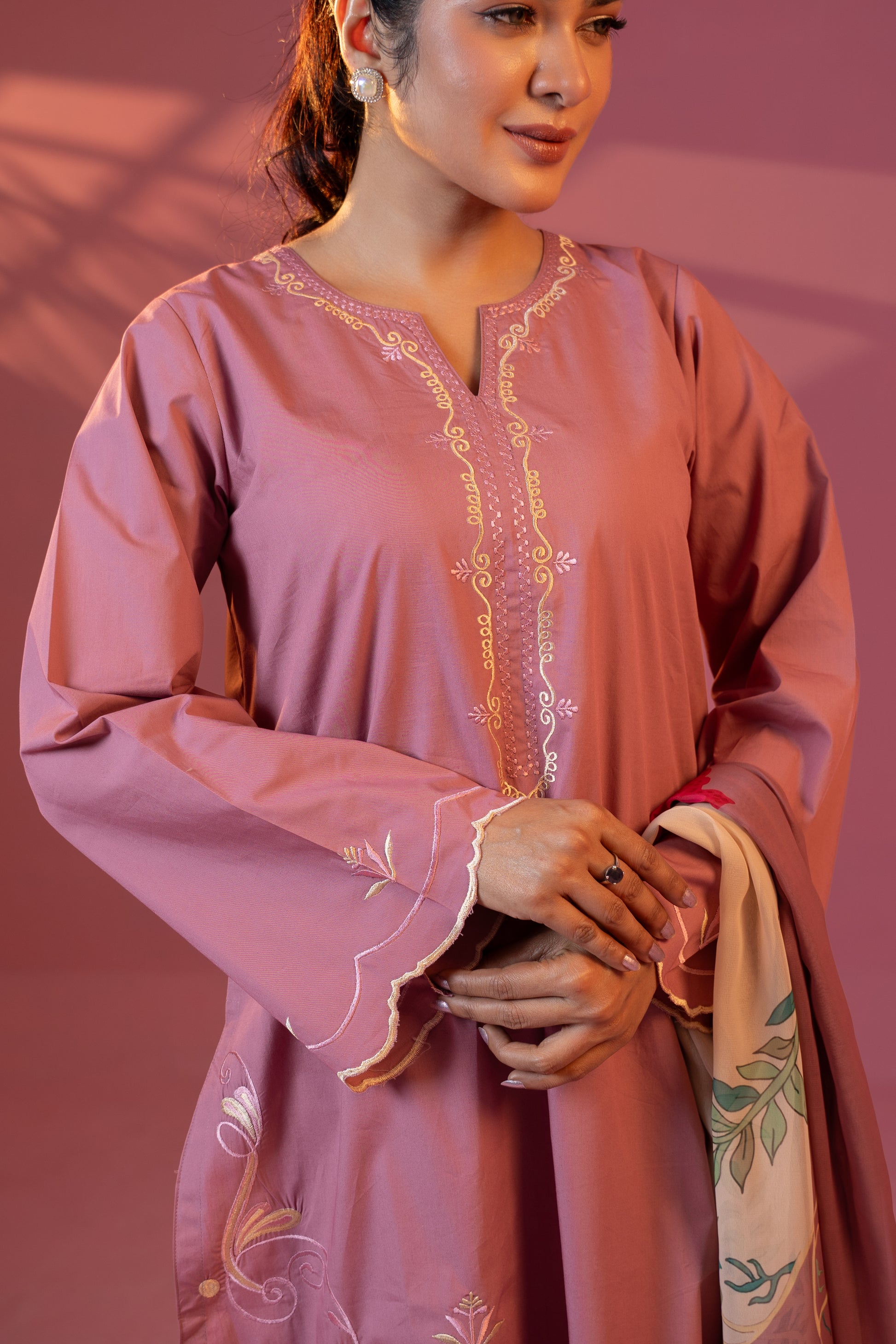 - Hand wash gently in cold water with a mild detergent to preserve the cotton fabric and delicate embroidery. Avoid bleach and harsh chemicals, and do not wring the garment. Dry in shade to maintain color, and iron on low heat from the reverse side, avoiding direct heat on the embroidery. Dry clean is optional for long-lasting care.
